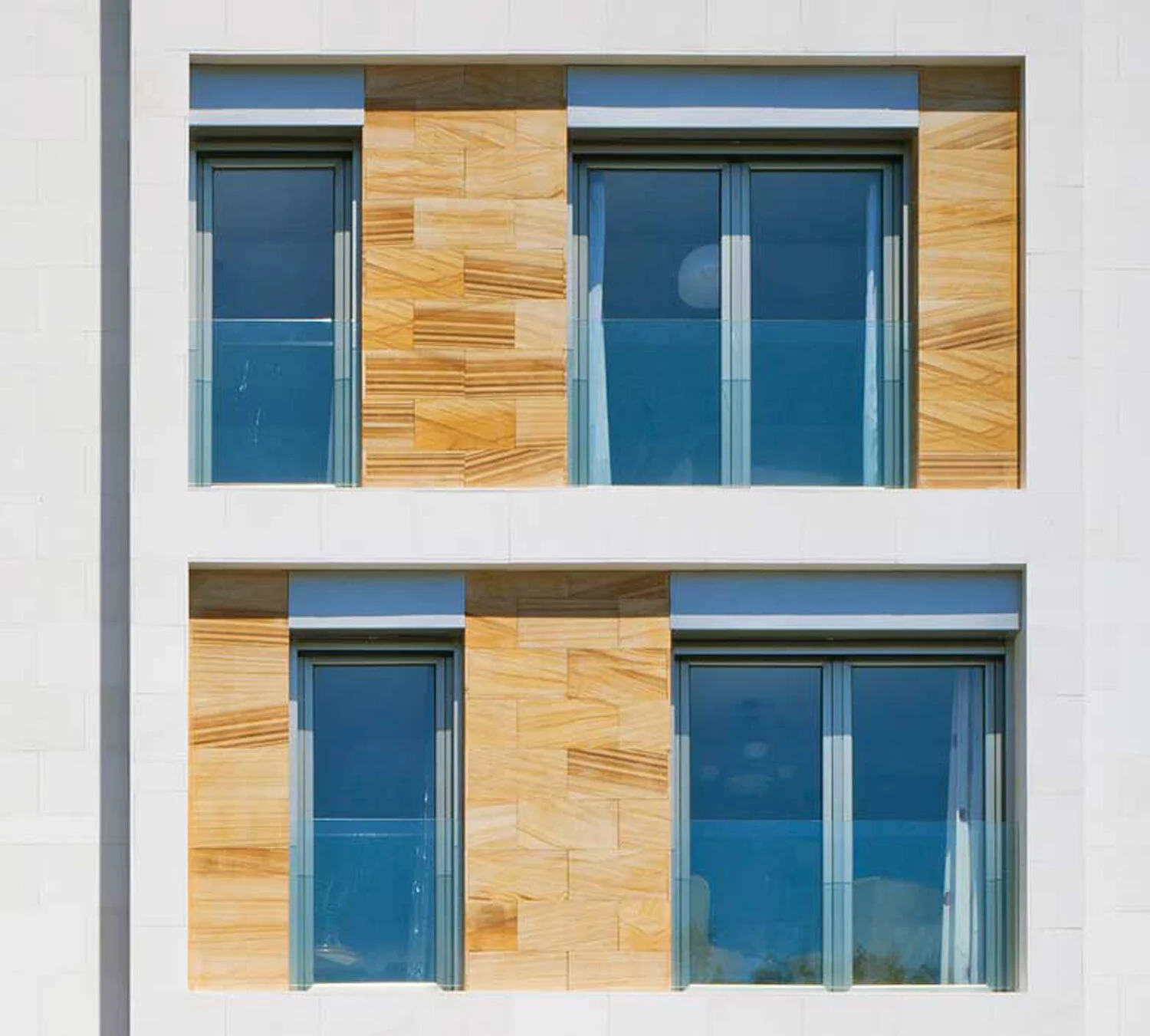 We developed two openings in the prism we obtained as a result of the maximum floor area ratio for obtaining an interior patio for the dwellings and a centred skylight. This skylight allows passive ventilation (perimeter grille) apart from lighting up the building stairs.We focused all our expressive capacity in the façade composition. We decided to setback the penthouse’s wall on the purpose of creating an accurate flying volume which defines a hollow that works as a balcony to the square, protects the building entrance and makes the façade appear less svelte at the same time.w Inside this frame, our facade composition, with its apparent disorder, seeks to express its inhabitant’s individuality reflected in each home and represented by the furnishing which can be seen inside during summer nights.