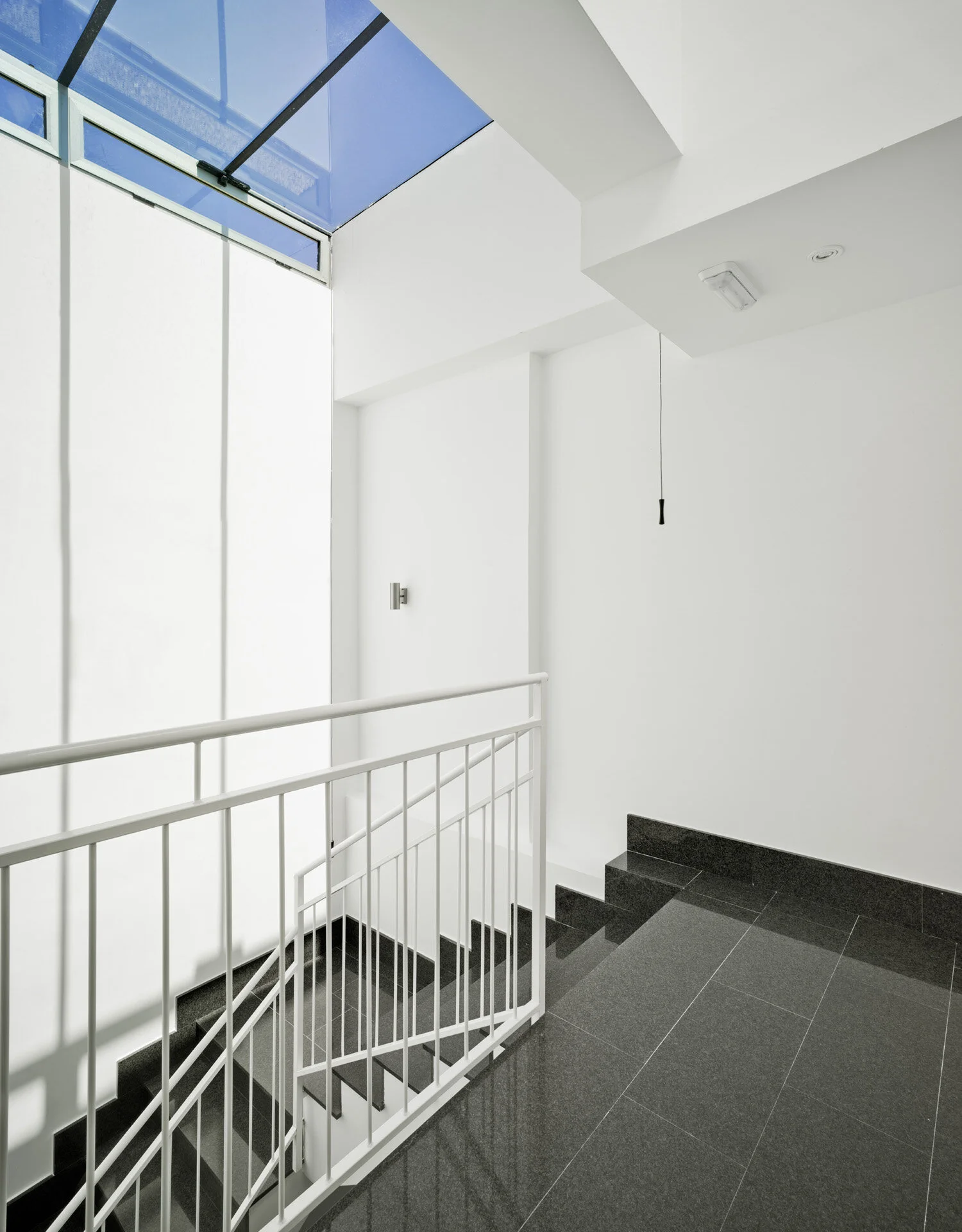 We firmly decided to see this project as an opportunity when we first faced this narrow plot (barely wide 7,40 meters, 18 meters deep)for 5 flats and a property dwelling building. This opportunity was brought forward when we first visited the plot in order to take advantage of facing a lively square, full of activity and a sunny façade.